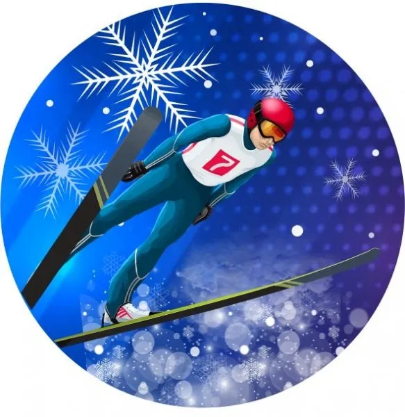 Športový farebný emblém s priemerom 25 a 50 mm, skoky na lyžiach.