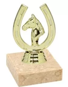 Športová chovateľská figúrka so štítkom na mramorovom podstavci.