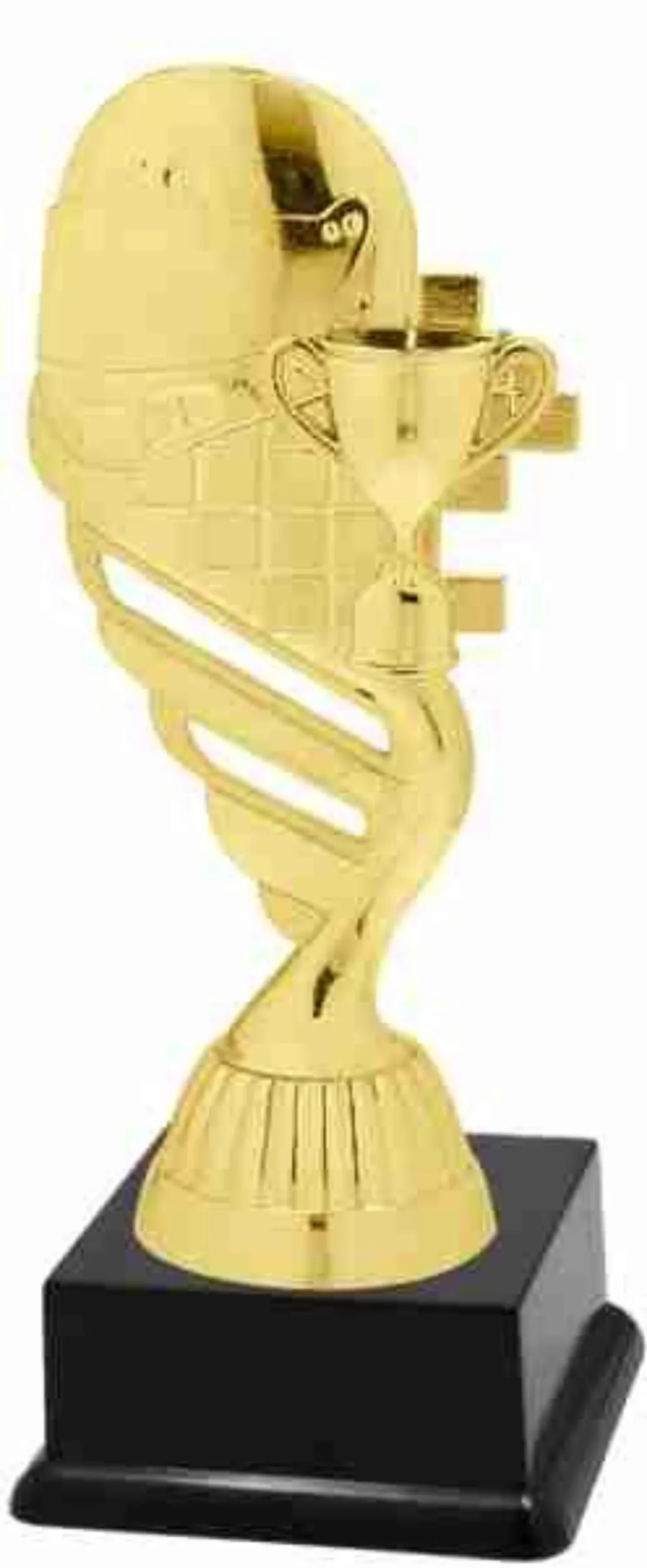 Športová figúrka na čiernom plastovom podstavci so štítkom.