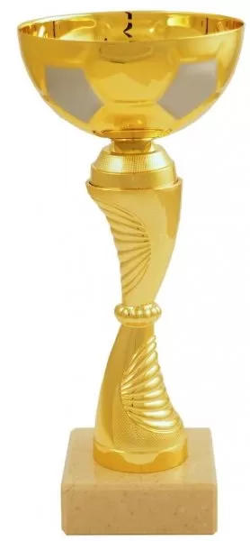 Športová futbalová trofej s vekom a štítkom na mramorovom podstavci.