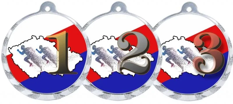 Športová medaila s bežeckým motívom vrátane emblému na prednej strane a s možnosťou emblému na zadnej strane 5 cm a stuhy.