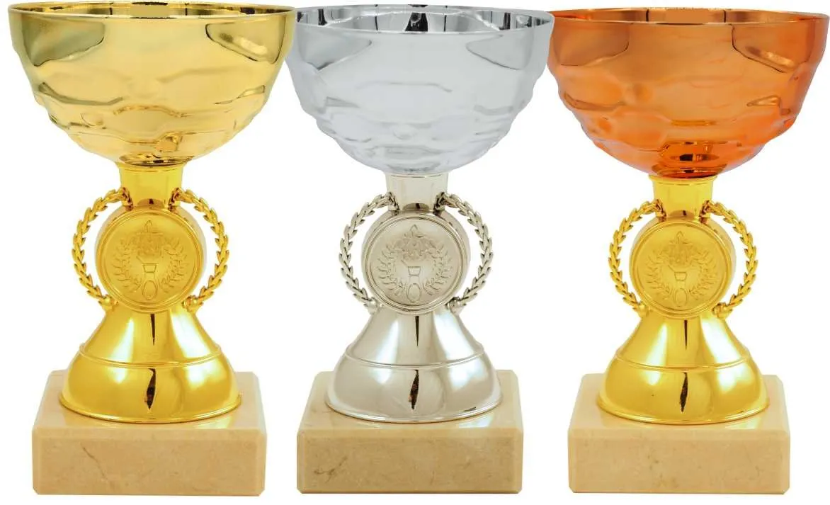Športový pohár na mramorovom podstavci s 2,5 cm emblémom, viečkom a štítkom.