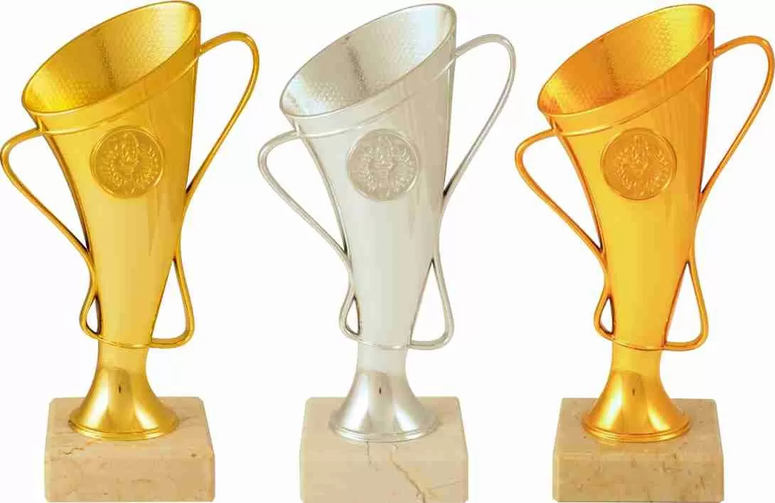 Športový pohár na mramorovom podstavci v zlatej, striebornej a bronzovej farbe s možnosťou emblému 2,5 cm.