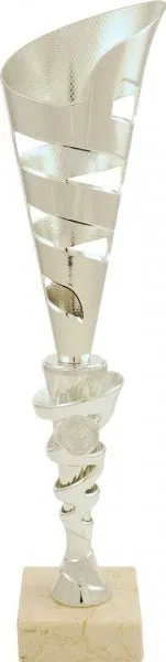 Športový pohár s 2,5 cm emblémom a štítkom na mramorovom podstavci v striebornom vyhotovení.
