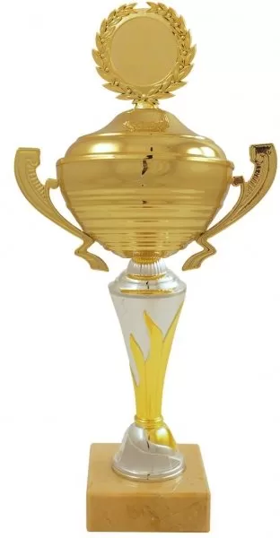 Športový pohár s možnosťou 5 cm emblému vo veku a štítkom na mramorovom podstavci.