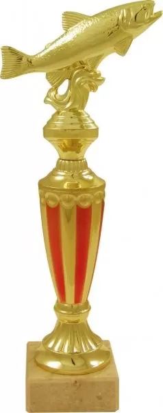 Trofej na športový rybolov so pstruhom v troch veľkostiach s možnosťou štítku na mramorovom podklade.