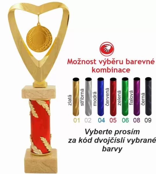 Športová trofej s možnosťou emblému v medaile a štítkom na mramorovom podstavci. Možnosť výberu farebnej kombinácie, zmenu uveďte v poznámkach.