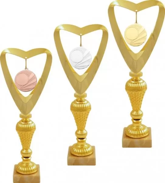Športová trofej s možnosťou umiestnenia emblému 2,5 cm do medaily a taniera na mramorovom podstavci.