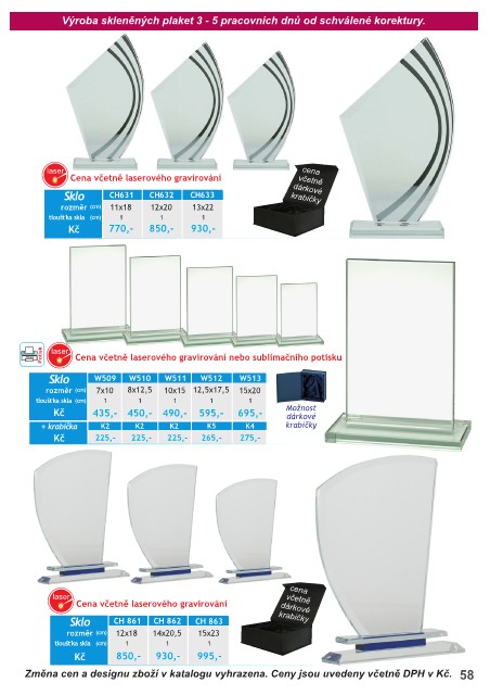 Výroba skleněných plaket 3 - 5 pracovních dnů od schválené korektury.