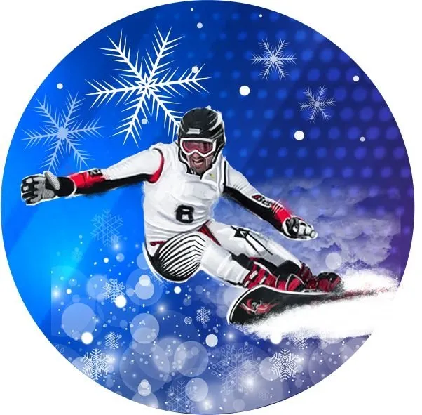 Športový farebný emblém s priemerom 25 a 50 mm, snowboard.