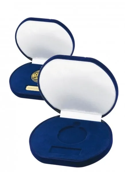 Sametom vystlané puzdro je vhodné na medailu s priemerom 5 cm a štítkom s rozmermi 19x51 mm.