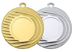 Športová kovová medaila v zlatej, striebornej a bronzovej farbe s možnosťou umiestnenia 2,5 cm emblému na prednú a zadnú stranu medaily a stuhy.