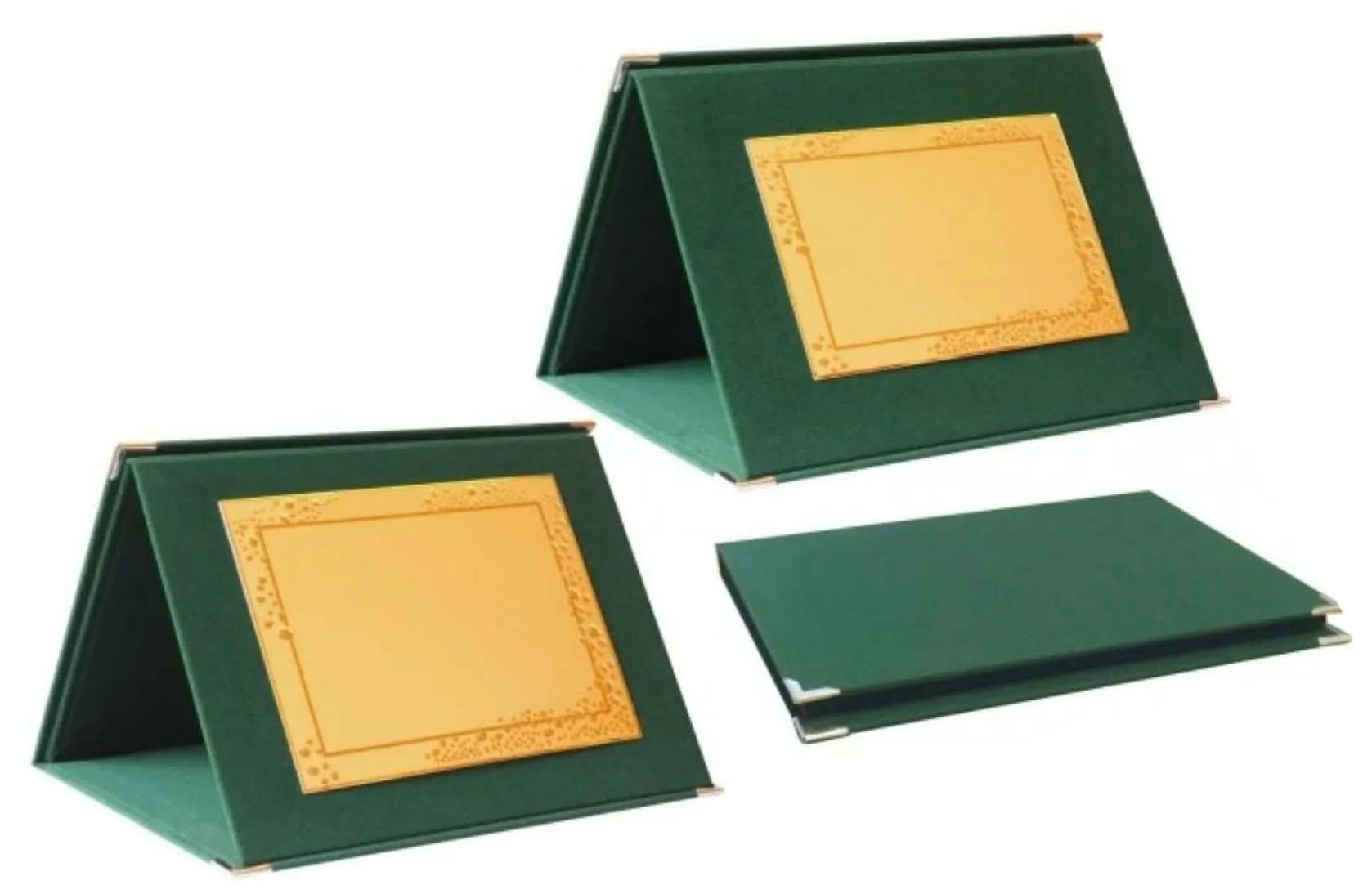 Športová plaketa v zelenom puzdre zlatej farby s možnosťou laserového gravírovania alebo tlače.