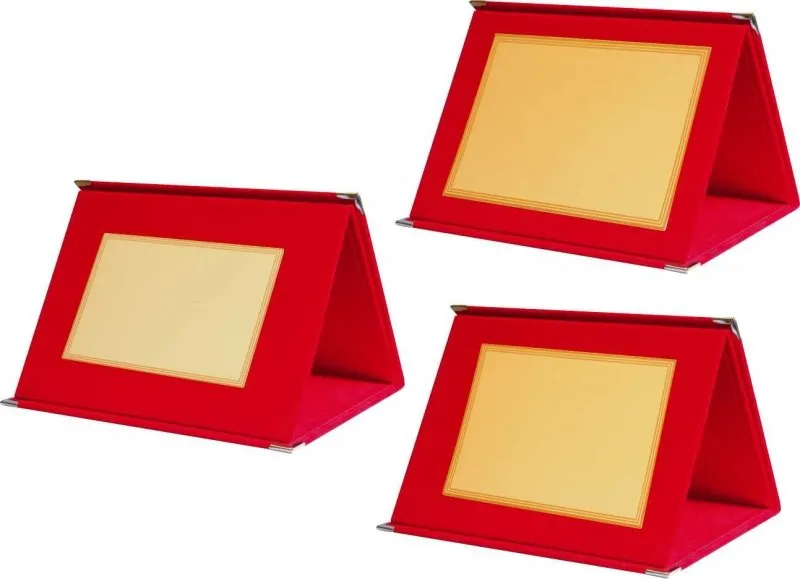 Športová plaketa v červenom puzdre zlatej farby s laserovým gravírovaním alebo potlačou v cene.