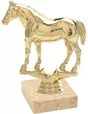 Športová chovateľská figúrka na mramorovom podstavci so štítkom.