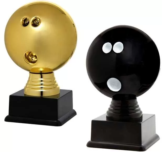 Športová figúrka na bowling na čiernom plastovom podstavci v zlatom alebo farebnom vyhotovení s možnosťou štítkovania.