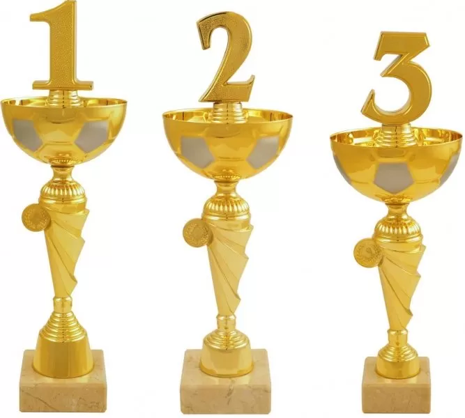 Športová futbalová trofej s 2,5 cm emblémom a štítkom na mramorovom podstavci 1.-3. miesto.
