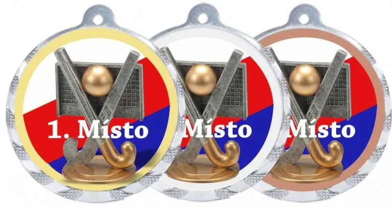 Športová medaila s emblémom na prednej strane a s možnosťou emblému na zadnej strane 5 cm a stuhou.