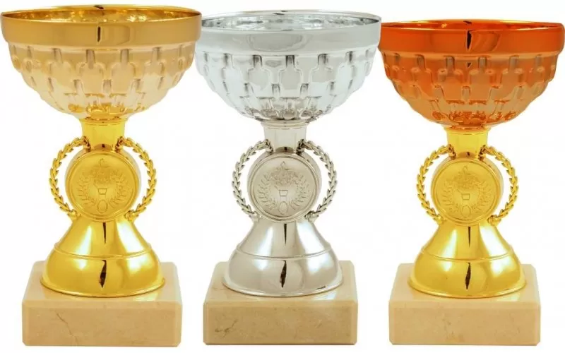 Športový pohár na mramorovom podstavci s 2,5 cm emblémom, viečkom a štítkom.