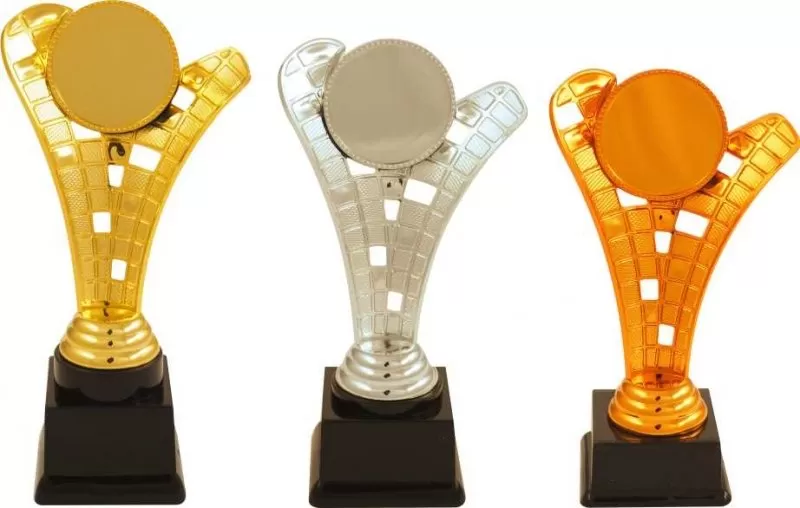 Športová trofej na mramorovom podstavci s 5 cm emblémom a štítkom.